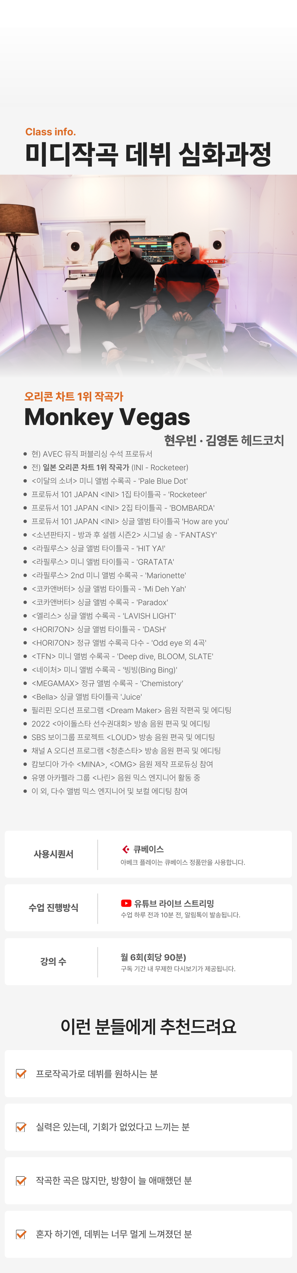 미디작곡 데뷔반 (심화과정) (3개월 일괄결제 상품)