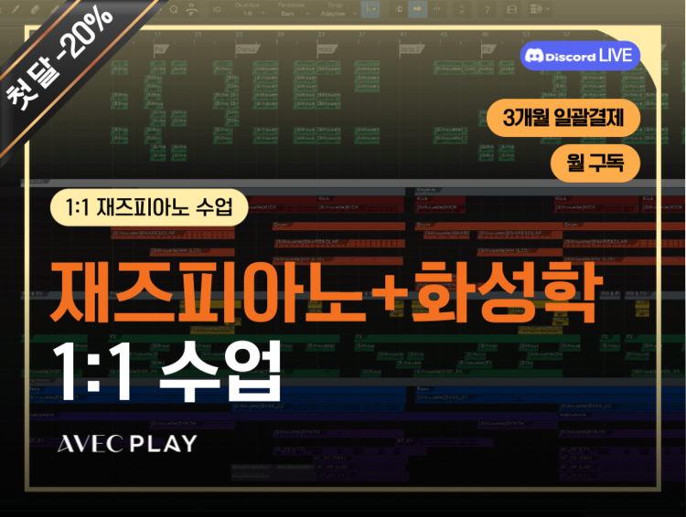 1. 재즈피아노+화성학 1:1 수업 (주 1회)